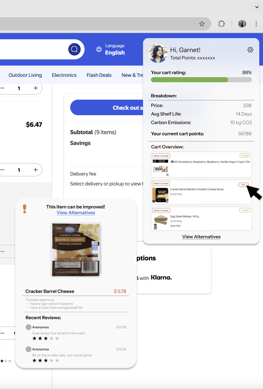 Lumr is a environmental buddy chrome extention that 'looms' over useres online purchases to give insight